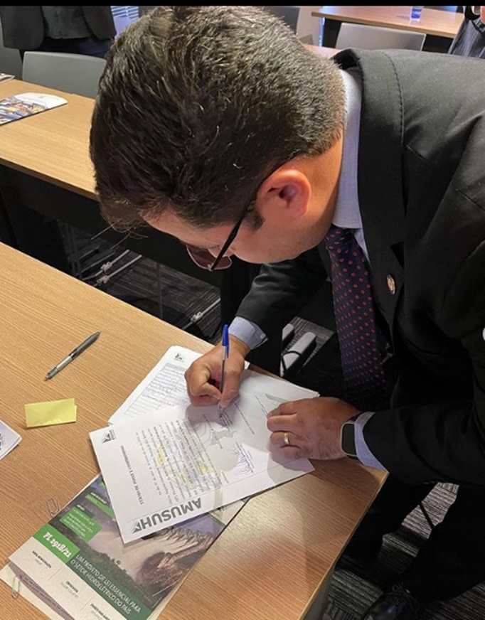“Agora pela manhã, assinei o termo de posse e compromisso para o cargo de CONSELHEIRO DOS MUNICÍPIOS ALAGADOS na Associação Nacional dos Municípios Sedes de Usinas Hidroelétricas e Alagados (AMUSUH) a convite do Prefeito de Ilha Solteira – SP e Presidente desta entidade Otávio Gomes e da Secretaria-Executiva Terezinha Sperandio a que muito me honra”.