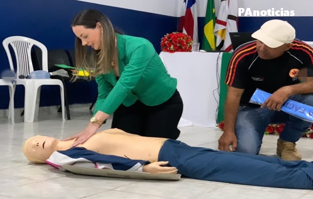 Encontro educativo com famílias e profissionais sobre primeiros socorros e cuidados na primeira infância, com orientações do enfermeiro e coordenador do SAMU, Sérgio de Araújo.