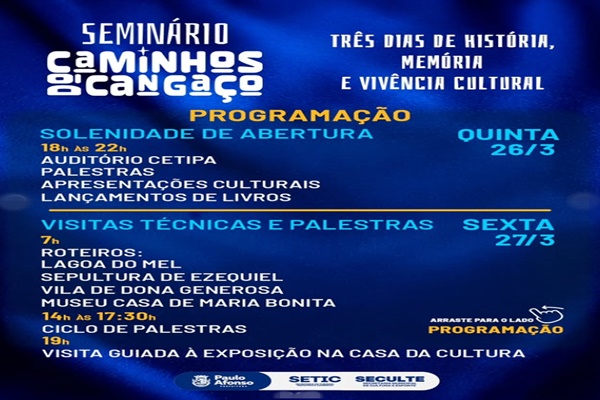 Prepare-se para uma imersão profunda na história que marcou a região de Paulo Afonso (BA). De 24 a 29 de março de 2026, a SETIC realiza o evento Oxente Cangaço, que está voltando a Paulo Afonso. O Seminário Caminhos do Cangaço, de 26 a 28, será três dias dedicados à história, à memória e à vivência de um dos movimentos mais marcantes do Brasil.